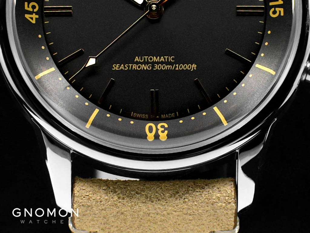 The Alpina Seastrong Diver 300 Heritage Gilt Ref. AL-520BY4H6, along with its collection, is probably one of the best value compressor divers in the market today. There are probably more upmarket brands reissuing similarly styled watches, but they usually cost a lot more than the Alpina. But don't be mistaken, the Alpina is no slouch when it comes to the overall package. For those who always wanted a good vintage watch to have a modern built, this might be the answer. So, if you are searching for a well priced, superbly finished, Swiss automatic movement and can look past branding, this is the compressor diver for you.