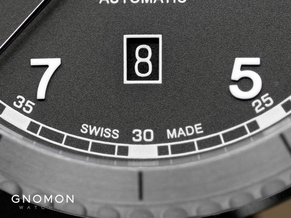 Finishing is well executed with a satin brushed finish on the top of the lugs as well as the side of the case, only to be separated by defining polished bevels to match its classy yet utilitarian design. Gone are the slim dressy bezel, the all new black steel bezel now comes with 5-minute markers at each point, and a red triangle pip at the top that reflects the brand’s logo. It is polished with satin finishing on the grooves, a touch of refinement as well as a sportier vibe, looking perfect on the wrist despite it being a rugged tool watch. The 3 o’clock position of the case features a distinctively diamond shaped crown that tapers beautifully for a confident grip while operating it. Paired with a grey RPET Rubber strap with matching stitchings, this piece looks incredibly versatile and ready to be strapped on the wrist for many occasions, even if you’re not a pilot.