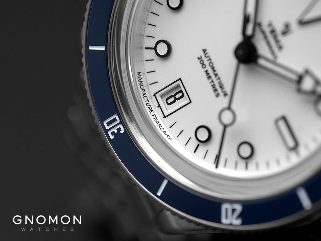 The high-quality double-domed sapphire crystal, enhanced with an anti-reflective coating, offers superior readability, increased scratch resistance, and a decidedly neo-vintage appearance. The new dial bring a refined, luxurious feel to the collection. The white glossy lacquer dial variant, featuring a matte finish on its surfaces, provides a bold, modern contrast against the black IP-treated hands and markers, resulting in understated elegance. For maximum legibility in the dark, the hour markers, hands, and the bezel pip are all nicely coated with Grade A SuperLumiNova. The date window is cleanly positioned at 6 o'clock, creating balance and symmetry that reinforces the clean, modern design.
